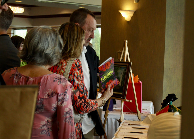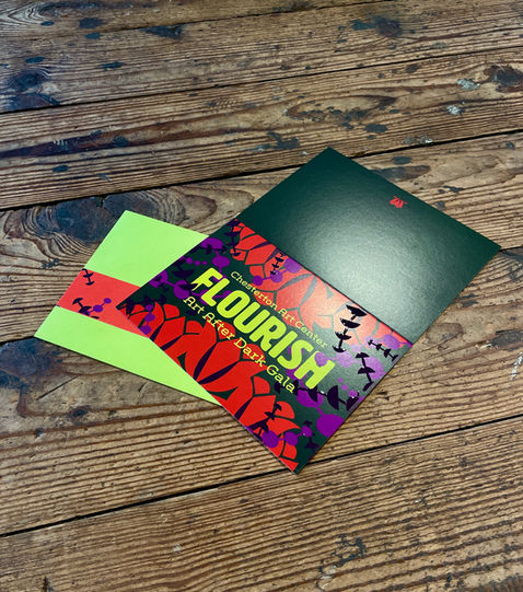 The board of the organization decided on the theme "Flourish". They presented the idea that it be moody and the design be based off of floral art deco wallpaper and paper cut outs.